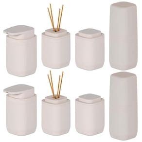 Especificações técnicas porta escova: - nossa loja: ar15 sport- marca: ou- modelo: aura- material: poliestireno ps - capacidade: 750ml- material resistente ideal para ambientes úmidos- tampa prática para proteção contra poeira e respingos- organização e praticidade para o seu dia a dia- compatível com escovas e cremes dentais de diferentes formatos- moderno e minimalista - dimensões: 8cm x 8cm x 20cm- peso total: 220 gramas especificações técnicas porta algodão: - marca: ou- modelo: aura- material: poliestireno ps - armazene algodão de forma organizada e protegida- com tampa para manter o algodão sempre limpo e livre de impurezas- ideal para bancadas de banheiro, penteadeiras e espaços de autocuidado- moderno e minimalista - dimensões: 8cm x 8cm x 11,5cm- peso total: 168 gramas especificações técnicas difusor: - marca: ou- modelo: aura- material: poliestireno ps - capacidade: 380ml- não acompanha essência- ideal para quem já tem o frasco do aroma favorito- acompanha 8 varetas difusoras- harmoniza com diferentes ambientes e estilos- basta inserir a sua essência preferida e posicionar as varetas- varetas absorvem e espalham o aroma de maneira contínua- ideal para espaços médios e grandes- moderno e minimalista - dimensões: 8cm x 8cm x 11,5cm- peso total: 236 gramas especificações técnicas porta sabonete: - marca: ou- modelo: aura- material: poliestireno ps - capacidade: 380ml- ideal para utilizar como saboneteira- consistência do produto compatível: líquido- tipo de dosagem: bomba manual- moderno e minimalista - dimensões: 8cm x 10cm x 13,5cm- peso total: 180 gramas itens inclusos: - 02 portas escovas de dente ou aura- 02 portas algodão ou aura- 02 difusores de ambientes ou aura- 02 portas sabonete líquido ou aura observações: de 03 meses mediante defeitos de fábrica. Imagens meramente ilustrativas. A tonalidade da cor do produto pode variar de acordo com a tela em que estão sendo observadas as fotos. Marca: Não Informado