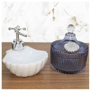 Design moderno. Acabamento excelente, um detalhe de concha no porta algodão e no porta sabonete em formato de concha, lindo. Combina com qualquer ambiente.