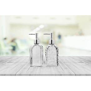 -02 unidades Porta Sabonete Líquido em vidro modelo Clear (bico dosador em plástico com revestimento cromado) Capacidade: 500ml - Yazi