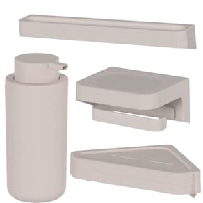 Kit Banheiro Saboneteira Porta Shampoo Toalheiro Papeleira Bege Ou Adesivo Parede.