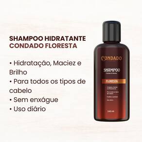 Kit Condado Floresta - Shampoo + Condicionador + Óleo Hidratante + Deo Colônia ProfissionalO Kit Condado Floresta foi criado para homens que buscam praticidade e elegância em um cuidado completo. Com Shampoo, Condicionador, Óleo Hidratante e Deo Colônia, oferece limpeza profunda, hidratação nutritiva e um acabamento sofisticado com fragrância amadeirada e envolvente.