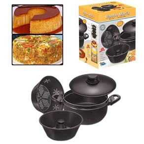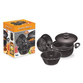 A Banho Maria é ideal para pudim, cuscuz e cozimento a vapor. Legumes ficam mais crocantes, mais saborosos e saudáveis pois ela mantém os valores nutritivos dos alimentos mantendo sua cor e vitaminas. É composta por quatro peças de alumínio, revestidas com antiaderente.
