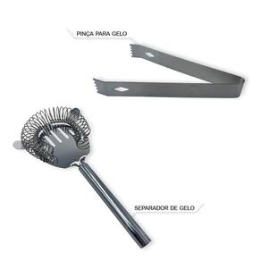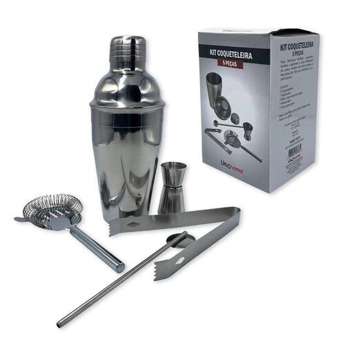 Kit Coqueteleira 5 Peças 550ml Inox Esse kit é perfeito para quem adora fazer deliciosas bebidas das mais diversas combinações. Faça coquetéis, caipirinhas, batidas e uma infinidade de outras receitas de forma prática. A boca da coqueteleira tem filtro para reter pedaços de frutas e gelo. Use a criatividade e faça diversos drinks para surpreender os convidados. Uso doméstico e profissional. O KIT É COMPOSTO POR:- 01 Coqueteleira- 01 Separador- 01 Mini copo dosador duplo- 01 Misturador - 01 Pinça para Gelo ESPECIFICAÇÕES:- Material: Aço Inox- Vem com 5 peças- Tamanho: Coqueteleira 22cm altura x 7cm diâmetro // Separador 18cm comprimento x 7cm largura // Mini copo dosador 7cm altura x 3,5cm diâmetro // Misturador 19cm comprimento // Pinça 16cm comprimento CONTÉM:01 Kit Coqueteleira Inox 550ml com 5 peças