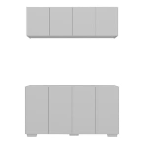 Kit Bar Armário Aéreo E Aparador 4 Portas Multimóveis Mp1087 Branco Branco