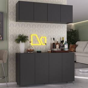 Kit Bar Armário Aéreo e Aparador 4 Portas Multimóveis MP1087 - Preto