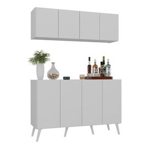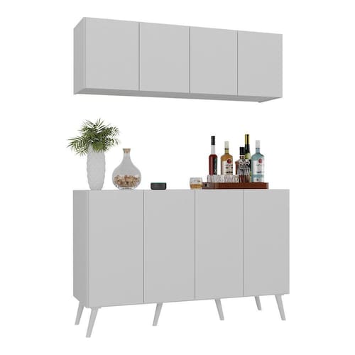 Receba seus convidados com estilo e sofisticação com o Kit Bar Armário Aéreo e Aparador 4 Portas Retrô Multimóveis MP1086. Fabricado em MDP (15mm) com acabamento acetinado (cerca de 20% de brilho), garante durabilidade e resistência. Composto por um aparador e um armário aéreo com 4 portas e prateleiras, oferece amplo espaço interno para organizar bebidas, copos e outros itens de bar. Seu design clean proporciona um visual moderno que combina com qualquer tipo de decoração. Além disso, o aparador possui pés retrô em polipropileno que oferecem estabilidade e um charme vintage.