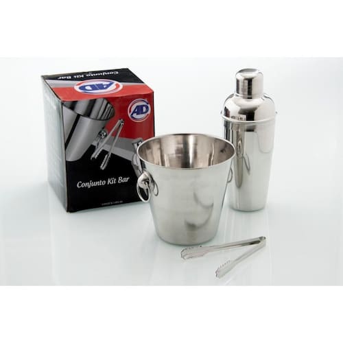 Kit bar inox 3 pçs 1.150ml - pegador - coqueteleira 500 ml Kit inox com 3 peças balde pegador e coqueteleira ad