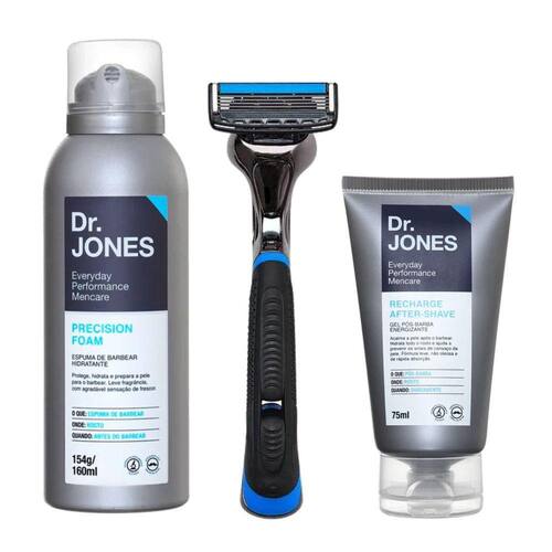 O Gel Pós-Barba Energizante possui textura suave e de rápida absorção, o Recharge After-Shave, da Dr. JONES, é um gel pós-barba que acalma e refresca a pele, cicatriza pequenas lesões e diminui a vermelhidão no rosto. Sua fórmula exclusiva, com Pantenol (Pró-Vitamina B5), Bioativo do Himalaia e a tecnologia Long Last Release, hidrata e energiza a pele, combate sinais de cansaço e garante frescor e toque suave por mais tempo. O ato de se barbear não deixa de ser uma agressão à pele do homem. Por isso, também é preciso cuidar dela depois de fazer a barba.