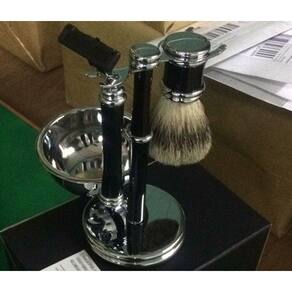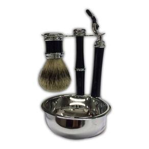 O kit vem com suporte, tigela, pincel e aparelho de barbear (NÃO ACOMPANHA LAMINA - ENCAIXE PARA O REFIL DA GILETTE MACH 3)