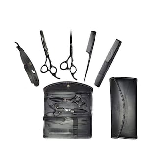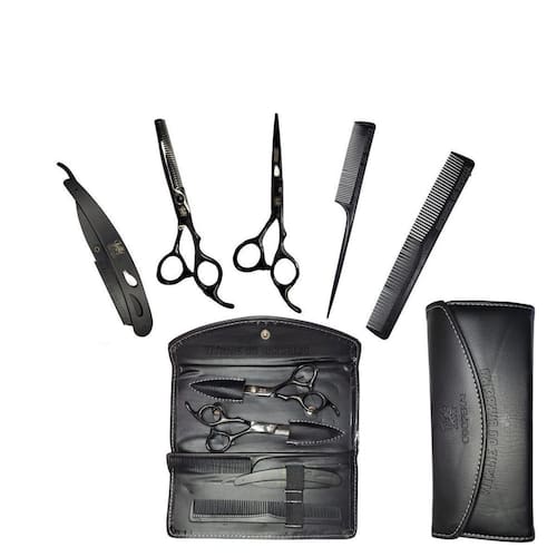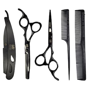 5 - tesoura de cabeleireiro ou barbeiro profissional, indicada para cabeleireiros de beleza, cabeleireiros, amantes e indivíduos de cabelo. Pode ser utilizado para aparar cabelos faciais: barba e pelos do corpo, também indicado para a vida doméstica como o noivo de estimação. Perfeito para quem deseja trabalhar com produto 100% novo e de alta qualidade ferramenta ideal para cabeleireiros e barbeiros. Tesoura com acabamento mais leve e resistente. Sua composição preserva o funcionamento e afiação da tesoura por mais tempo.