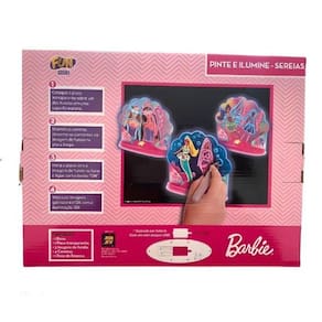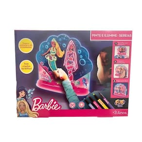 Kit Barbie - Pinte e Ilumine - Sereias - STARTBarbie Pinte E Ilumine Sereias Fun Além de garantir uma experiência de pintura enriquecedora, o Kit de Pintura Fun Barbie oferece um momento especial de conexão entre pais, irmãos e amigosImagine o sorriso radiante da sua pequena artista ao ver seu trabalho ganhar vida nas telas! Este kit é um presente que transcende o momento presente, pois cada obra de arte se torna uma lembrança preciosa para toda a vidaDetalhes:Certificação: Certificado Pelos Órgãos Autorizados - OCP`S(Organismos De Certificação De Produtos)Registro: 300/2002 OCP 0061Características:Conteúdo da Embalagem: 1 Base, 1 Placa Transparente, 3 Imagens de Fundo, 4 Canetas, 1 Pano de LimpezaMaterial/Composição: Plastico/MetalRef: F0123-5Marca: FunModelo: BarbieIdade Indicada: 3+Peso Aproximado: 0,44Código de Barras: 7908489405121Requer Bateria: 4 X 15 (AAA) NÃO INCLUÍDASAviso: As cores podem variar entre as imagens mostradas acima e o produto Imagens meramente ilustrativas