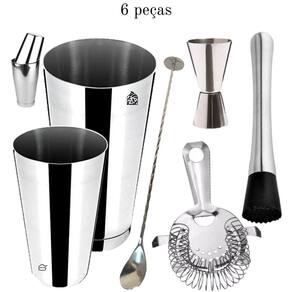 Kit Barman Copo Dosador Coqueteleira Profissional Pro 6Pç W9