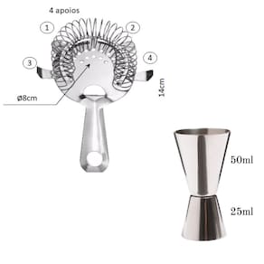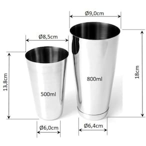 1 Coqueteleira profissional modelo Boston em aço inox 800ml Tin com peso