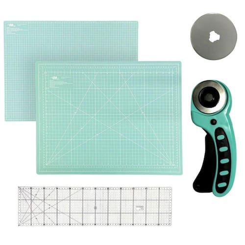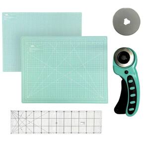 Kit iniciante para Patchwork, Artesanato e Scrapbook, você poderá dar vida a seus projetos de costura com muito mais precisão e facilidade. A base de corte grande tem uma área de trabalho no tamanho 90cm x 60cm conta com superfície emborrachada, tecnologia autocura, essa tecnologia prolonga a vida útil de sua base de corte, evitando que você risque sua bancada ao fazer cortes com estiletes e ou cortadores circulares. Regua de Acrilico 15x60 com marcação de centimetro, meio centimetro e angulos. Acompanha Cortador circular com disco de 45mm e 1 lâmina de reposição, para que você possa realizar cortes precisos com a maior facilidade. Adquira agora mesmo o nosso kit iniciante para Patchwork, Artesanato e Scrapbook e comece a criar peças incríveis com a maior facilidade e precisão! Marca: ADB