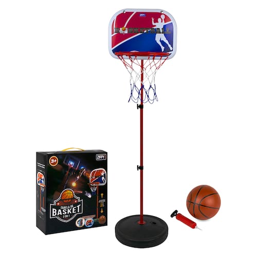 Marca: Zippy Toys Modelo: Tabela de Basket 2 em 1 com pedestal ajustável Composição: Ferro e plástico Conteúdo da Embalagem: 01 Unidade Certificação do INMETRO: 009943/2022 Idade recomendada: + 3 anos Altura Ajustável do Pedestal: 122cm - 150cm - 170cm Dimensões Tabela (C x A): 34 x 24 cm Dimensões Base (Ø x A): 29 x 6 cm Dimensões Aro da Cesta (Ø): 23 cm Dimensões Bola (Ø): 15 cm Peso: 1,070g