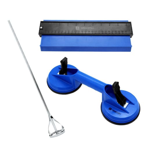 Kit Batedor HEX 60 + Ventosa Dupla 60kg + Copiador de Contorno Kit composto por: 1 Batedor/Misturador de Argamassa HEX 60 1 Ventosa Dupla 60kg 1 Gabarito Copiador de Contorno