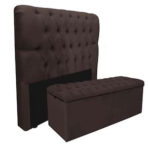 Lindo Conjunto Baú Recamier E Cabeceira Mardid Casal em Sintetico Marrom. Ideal para quem busca modernidade para o quarto e espaço para guardar cobertores, roupas de cama, travesseiros, entre outros. Recomendado para cama casal padrão 138cm x 188cm. Feitos com madeira reforçada 100% de reflorestamento garante durabilidade e a resistência do produto, acabamento em tecido Sintetico, tratamento antialérgico e antiácaro.
