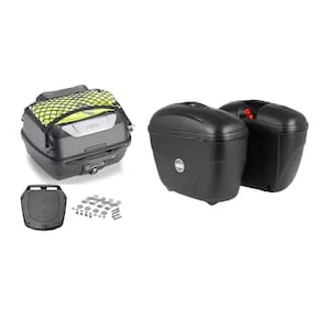 Fabricado em polipropileno de alta resistência, o GIVI E43NBR apresenta um acabamento em preto fosco com detalhes em prata escovado, conferindo um visual moderno e discreto. Seu design funcional inclui uma rede elástica externa para fixação rápida de objetos e um encosto acolchoado integrado, proporcionando maior conforto ao passageiro.