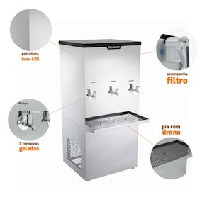 Kit Bebedouro Industrial 100 Litros Refrigerado Inox Bi100l 127v + Filtro - Venâncio