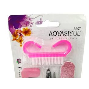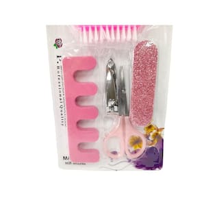 01 Escova de Unhas, 01 Lixa com Glitter, 01 Tesoura de Unha, 01 Cortador de Unhas e 01 Separador de Unhas.