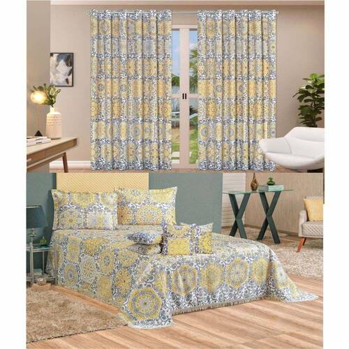Kit Belline Colcha Padrão com 4 Capas Almofadas + Cortina 3 Metros - Total 8 Peças