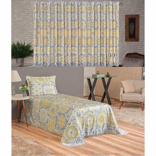 Kit Belline Colcha Solteiro + Cortina 2 Metros 3 Peças