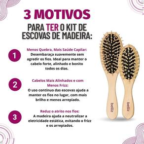 Este kit foi pensado para proporcionar uma experiência completa de cuidado capilar, garantindo fios mais saudáveis e bem cuidados. Invista na qualidade e na durabilidade da madeira para um toque natural em sua rotina de beleza.