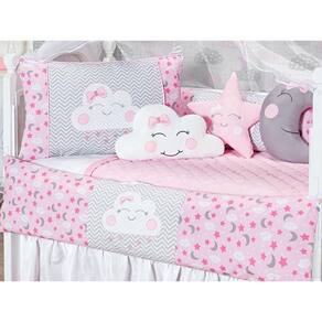 Kit Berço 12 Peças Nuvem Estampado Menina Rosa Claro Baby