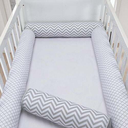 Kit Berço Rolinhos Americano com 4 peças, fabricado em tecido 100% algodão com estampa. Os rolinhos possuem zíper e os enchimentos removíveis para lavagem. Complete sua lista de enxoval de bebê. O berço é o cantinho mais aconchegante depois do colo dos pais. Pensando na segurança e conforto do bebê, o kit berço rolo 4 peças, protege o bebe do contato com a grade do berço, ele é confeccionado em tecido 100% algodão. Possui zíper para facilitar a higienização.
