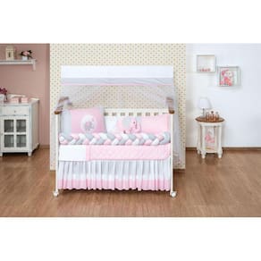 TOTAL 11 PEÇAS1 Cabeceira------------------0.57 x 0.37 mts1 Lateral -----------------------1.25 x 0.25mts1 Trança --------------------1.25 x 0.12 mts 1 Lençol de cima ------------1.30 x 0.90 mts ------ 100% ALGODÃO1 Fronha ---------------------0.28 x 0.38 mts ------ 100% ALGODÃO1 Bando do mosqueteiro---1.40 x 0.20 mts1 Mosqueteiro---------------4.50 x 1.50 mts1 Edredom-------------------1.30 x 0.75 mts1 Trocador -------------------0,50 x 0,40 mts1 Almofada Elefantinho--------0.35 x 0.30 mts1 SAIA BOX -------------1,30 x 0,70 x 0,30 mtsDescrição das peças :Tecido estampado 100% algodão Tecido liso 100% poliéster Jogo de lençol tecido 100% ALGODÃO Enchimento 100% poliésterMosqueteiro 100% poliamidaInformações Importantes:O produto já vai pronto para o uso, com o enchimento já incluso.Acompanha as peças conforme a descrição, não esta incluso o BerçoA cabeceira e as laterais do kit possuem zíper para retirar o enchimento, facilitando assim uma possível lavagem do produto. Marca: L2m