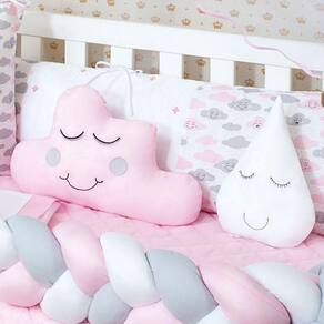 TOTAL 11 PEÇAS1 Cabeceira------------------0.57X0.37 mts1 Lateral -----------------------1.25X0.25mts1 Trança --------------------1.25X0.12 mts 1 Lençol de cima ------------1.30X0.90 mts ------ 100% ALGODÃO1 Fronha ---------------------0.28x0.38 mts ------ 100% ALGODÃO1 Bando do mosqueteiro---1.40x0.20 mts1 Mosqueteiro---------------4.50x1.50 mts1 Edredom-------------------1.30X0.75 mts1 Almofada nuvem --------0.40x0.20 mts1 Almofada Gota ----------0,30 x 0,22 mts1 SAIA BOX -------------1,30 x 0,70 x 0,30 mtsDescrição das peças :Tecido estampado 100% algodão Tecido liso 100% poliéster Jogo de lençol tecido 100% ALGODÃO Enchimento 100% poliésterMosqueteiro 100% poliamidaInformações Importantes:O produto já vai pronto para o uso, com o enchimento já incluso.Acompanha as peças conforme a descrição, não esta incluso o BerçoA cabeceira e as laterais do kit possuem zíper para retirar o enchimento, facilitando assim uma possível lavagem do produto. Marca: L2m
