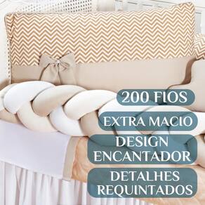 Kit Berço Americano Protetor De Berço Trançado Ternura Luxuoso Cor: CAQUI Dê ao quarto do seu bebê um ar luxuoso, moderno e acolhedor com o Kit Berço Americano Ternura Luxuoso com Protetor Trançado. Mais que uma decoração, é segurança, conforto e estilo em cada detalhe. Imagine seu bebê dormindo tranquilo, rodeado pela suavidade de um protetor trançado que, além de proteger, é uma verdadeira peça de design. O visual sofisticado transforma o berço em um cantinho digno de revista, enquanto o toque macio traz uma sensação de colo e carinho. Cada peça do kit foi pensada para transmitir ternura e aconchego, criando memórias únicas para os primeiros meses de vida. Seu bebê merece o melhor desde o início. Esse kit é completo, prático e fácil de cuidar. O protetor trançado, além de lindo, é firme, seguro e pode ser também em outros ambientes, como decoração do quarto. Adquira já o Kit Berço Americano Protetor Trançado Ternura Luxuoso e transforme o sono do seu bebê em puro aconchego e elegância Contém: 1 Cabeceira 0.60x0.40 mts 1 Lateral 1.25x0.25mts 1 Trança 1.28x0.12 mts 1 Lençol de cima 1.30x0.70 mts 1 Fronha 0.28x0.38 mts 1 Bando do mosqueteiro 1.40x0.20 mts 1 Mosqueteiro 4.50x1.50 mts 1 Almofada COROA 0.40x0.20 mts 1 TROCADOR 0,60 x 0,42 mts 1 SAIA BOX 1,30 x 0,70 x 0,30 mts 1 Edredom 130cm x 75cm Composição: Tecido 200 FIOS Faq - Dúvidas Frequentes 1. Esse kit serve em berço americano Sim, ele foi desenvolvido especialmente para berço americano. 2. O protetor trançado pode ser fora do berço Sim, pode ser como decoração em cama montessoriana, poltrona ou até para brincar no chão. 3. É seguro para o bebê Sim, o trançado é firme e macio, feito para garantir proteção contra batidas no berço. 4. Como devo lavar o kit Pode ser lavado à máquina, no ciclo delicado, usando sabão neutro. 5. O tecido desbota com facilidade Não, o material é de alta qualidade, resistente e feito para durar. Transforme o quarto do seu bebê em um espaço cheio de amor, luxo e proteção. Garanta agora o Kit Berço Americano Protetor Trançado Ternura Luxuoso e ofereça ao seu pequeno um cantinho digno de príncipe ou princesa