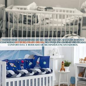 Kit berço baby dream 10 peças super aconchegante e charmoso Cor: astronauta Kit berço baby dream 10 peças - aconchego e charme para o seu bebê Tudo que você precisa para noites tranquilas e dias cheios de conforto para o seu pequeno.