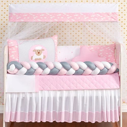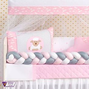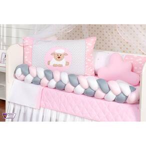 Kit berço carneirinho trança infantil kit americano para bebê Cor: rosa Kit berço carneirinho trançado menino e menina 11 peças kit americano para bebê com edredom e saia
