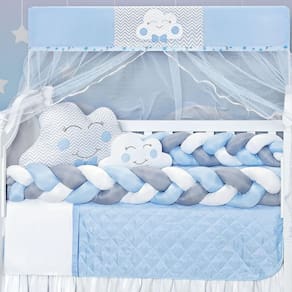 Kit berço com duas tranças laterais cabeceira nuvem azul 12p