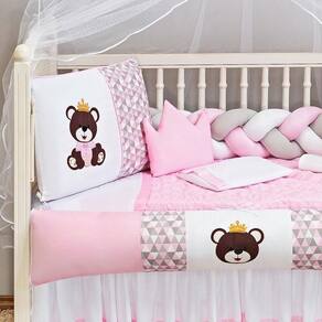 Kit Berço Com Saia Box Trança Para Menina 14 Peças Rosa Total 14 peças