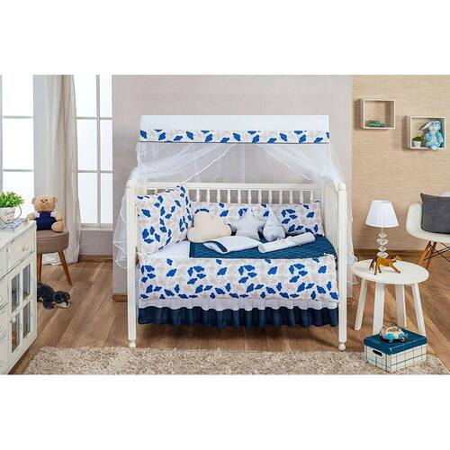 Kit Berço Desenho De Nuvem 8 Peças Menino Azul Marinho