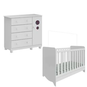 A Cômoda Bolinha Infantil complementa o kit oferecendo organização prática no dia a dia. Possui 4 gavetas com corrediças telescópicas ,Porta com PETG cristal, ideal para roupas, brinquedos e acessórios. Equipada com sistema antitombamento e pés reguláveis em ABS, une segurança e funcionalidade com acabamento branco.