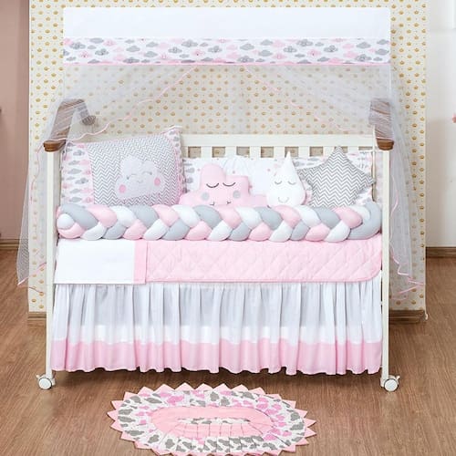 Kit berço lateral trançaçada tapete e estrela nuvem rosa kit de berço nuvem 13 peças
