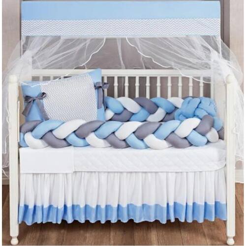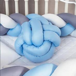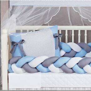 Kit Berço 11 Peças Saia Box Azul Claro Com Almofada De Nó Kit berço masculino recém nascido com duas tranças cheias e almofada de nó 11 peças saia box azul claro Contém: 1 edredom 1,30 m x 0,70 cm. 1 cabeceira 0,60 cm x 0,40 cm. 2 tranças 1,28 m x 0,12 cm. 1 lençol de cima 1,30 m x 0,90 cm. 1 fronha 0,28 cm x 0,38 cm. 1 bando de mosquiteiro 1,40 m x 0,20 cm. 1 mosqueteiro 4,50 m x 1,50 m. 1 trocador 0,60 cm x 0,40 cm. 1 almofada escandinava 0,40 cm x 0,40 cm. 1 saia para berço 1,30 m x 0,70 cm x 0,30 cm.