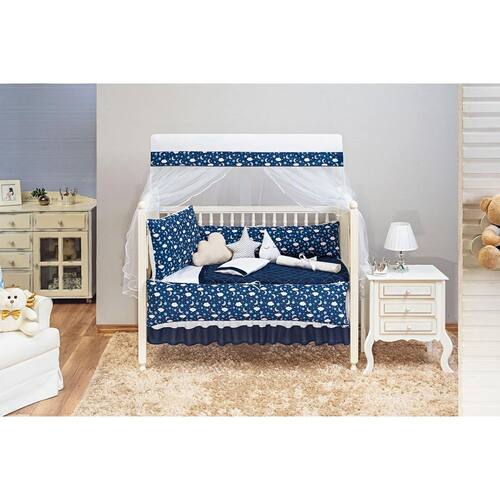 Kit berço menino estampado mundo azul marinho 13 peças