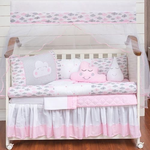 Informações Importantes: O produto já vai pronto para o uso, com o enchimento já incluso. Acompanha as peças conforme a descrição, não esta incluso o Berço A cabeceira e as laterais do kit possuem zíper para retirar o enchimento, facilitando assim uma possível lavagem do produto. as cabeceiras em formato de nuvem ou coroa não possuem zíper TOTAL 11 PEÇAS 1 Cabeceira 0.57X0.37 mts 1 Lateral 1.25X0.25mts 1 Trança 1.25X0.12 mts 1 Lençol de cima 1.30X0.90 mts - 100% ALGODÃO 1 Fronha 0.28x0.38 mts - 100% ALGODÃO 1 Bando do mosqueteiro 1.40x0.20 mts 1 Mosqueteiro 4.50x1.50 mts 1 Edredom 1.30X0.75 mts 1 Almofada nuvem 0.40x0.20 mts 1 Almofada Gota 0,30 x 0,22 mts 1 SAIA BOX 1,30 x 0,70 x 0,30 mts Observações: - Produto com excelente qualidade de tecido e acabamento. - Possui zíper para remoção dos enchimentos. DESCRIÇÃO DAS PECAS : Tecido estampado: 100% Algodão Tecido liso: 50% Algodão| 50% Poliéster Lençol: 100% Algodão Fronha: 100% Algodão Enchimento 100% Poliéster Mosqueteiro 100% Poliamida Marca: Não Informado