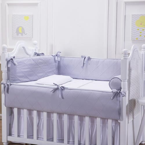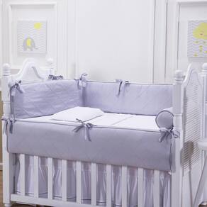 Tipo de berço:Americano e Nacional Acompanha jogo de lençol:Sim, 3 peças Acompanha trocador:Não Acompanha mosquiteiro:Não Coleção:Percal Possui Edredom ou cobre leito:Não Número de peças:07 Peças Possui zíper:Sim Possui Enchimento:Sim Possui Bordado:Não