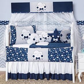 Kit Berço Proteção Nas Duas Laterais 12 Peças Menino Marinho