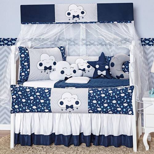 Kit berço proteção nas duas laterais 12 peças menino marinho