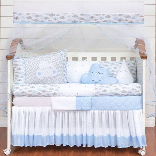 Informações Importantes:O produto já vai pronto para o uso, com o enchimento já incluso.Acompanha as peças conforme a descrição, não esta incluso o BerçoA cabeceira e as laterais do kit possuem zíper para retirar o enchimento, facilitando assim uma possível lavagem do produto. as cabeceiras em formato de nuvem ou coroa não possuem zíper TOTAL 11 PEÇAS 1 Cabeceira 0.57X0.37 mts1 Lateral 1.25X0.25mts1 Rolinho 1.25X0.12 mts 1 Lençol de cima 1.30X0.90 mts - 100% ALGODÃO1 Fronha 0.28x0.38 mts - 100% ALGODÃO1 Bando do mosqueteiro 1.40x0.20 mts1 Mosqueteiro 4.50x1.50 mts1 Edredom 1.30X0.75 mts1 Almofada nuvem 0.40x0.20 mts1 Almofada Gota 0,30 x 0,22 mts1 SAIA BOX 1,30 x 0,70 x 0,30 mtsObservações:- Produto com excelente qualidade de tecido e acabamento.- Possui zíper para remoção dos enchimentos.DESCRIÇÃO DAS PECAS :Tecido estampado: 100% AlgodãoTecido liso: 50% Algodão| 50% PoliésterLençol: 100% AlgodãoFronha: 100% AlgodãoEnchimento 100% PoliésterMosqueteiro 100% Poliamida Marca: L2m