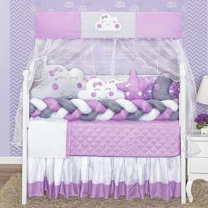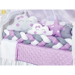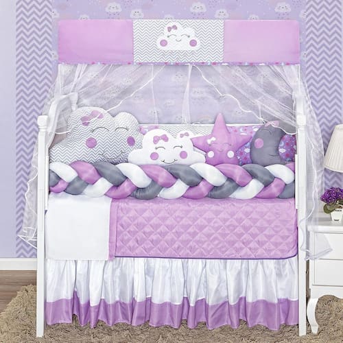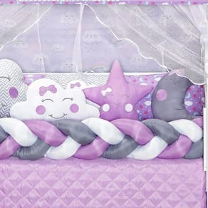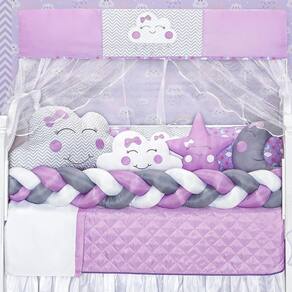 Kit Berço Trança Céu Cab Nuvem Estrela Lilás Menina 12 Peças