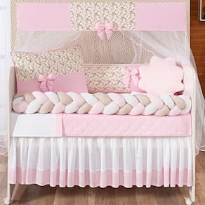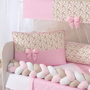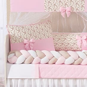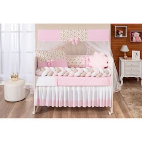 Kit Berço Trança Completo Doce De Bebê 12 Peças 1 cabeceira------------------0.60x0.40 mts 1 lateral -----------------------1.25x0.25mts 1 trança --------------------1.25x0.12 mts 1 lençol de cima ------------1.30x0.90 mts ------ 100% algodão 1 fronha ---------------------0.28x0.38 mts ------ 100% algodão 1 Refil de travesseiro----------0.28x0.38 mts 1 bando do mosqueteiro---1.40x0.20 mts 1 mosqueteiro---------------4.50x1.50 mts 1 edredom-------------------1.30x0.75 mts 1 almofada nuvem --------0.40x0.30 mts 1 trocador -----------------0,60 x 0,40 mts 1 saia box -------------1,30 x 0,70 x 0,30 mts Cor Rosa Observações: - produto com excelente qualidade de tecido e acabamento. - possui zíper para remoção dos enchimentos. Descrição das pecas : Tecido estampado: 100% algodão Tecido liso: 50% algodão| 50% poliéster Lençol: 100% algodão Fronha: 100% algodão Enchimento 100% poliéster Mosqueteiro 100% poliamida Informações importantes: O produto já vai pronto para o uso, com o enchimento já incluso. Acompanha as peças conforme a descrição, não esta incluso o berço A cabeceira e as laterais do kit possuem zíper para retirar o enchimento, facilitando assim uma possível lavagem do produto. Kit para berço padrão Americano e Nacional Marca: Não Informado Ean: 7890201047255