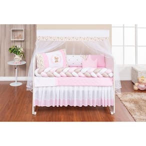Informações Importantes: O produto já vai pronto para o uso, com o enchimento já incluso. Acompanha as peças conforme a descrição, não esta incluso o Berço A cabeceira e as laterais do kit possuem zíper para retirar o enchimento, facilitando assim uma possível lavagem do produto. as cabeceiras em formato de nuvem ou coroa não possuem zíper TOTAL 11 PEÇAS 1 Cabeceira 0.57X0.37 mts 1 Lateral 1.25X0.25mts 1 Trança 1.25X0.12 mts 1 Lençol de cima 1.30X0.90 mts ------ 100% ALGODÃO 1 Fronha 0.28x0.38 mts ------ 100% ALGODÃO 1 Bando do mosqueteiro 1.40x0.20 mts 1 Mosqueteiro 4.50x1.50 mts 1 Edredom 1.30X0.75 mts 1 Almofada nuvem 0.40x0.20 mts 1 Almofada Gota 0,30 x 0,22 mts 1 SAIA BOX 1,30 x 0,70 x 0,30 mts Observações: - Produto com excelente qualidade de tecido e acabamento. - Possui zíper para remoção dos enchimentos. DESCRIÇÃO DAS PECAS : Tecido estampado: 100% Algodão Tecido liso: 50% Algodão| 50% Poliéster Lençol: 100% Algodão Fronha: 100% Algodão Enchimento 100% Poliéster Mosqueteiro 100% Poliamida Marca: L2m Ean: 7890201000564