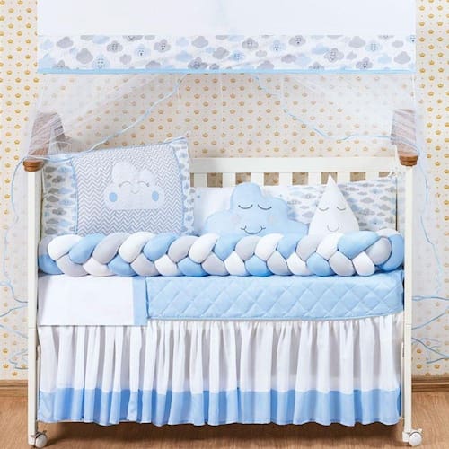 O kit berço serve em berços padrão nacional e americano Possui zíper para retirar os enchimentos